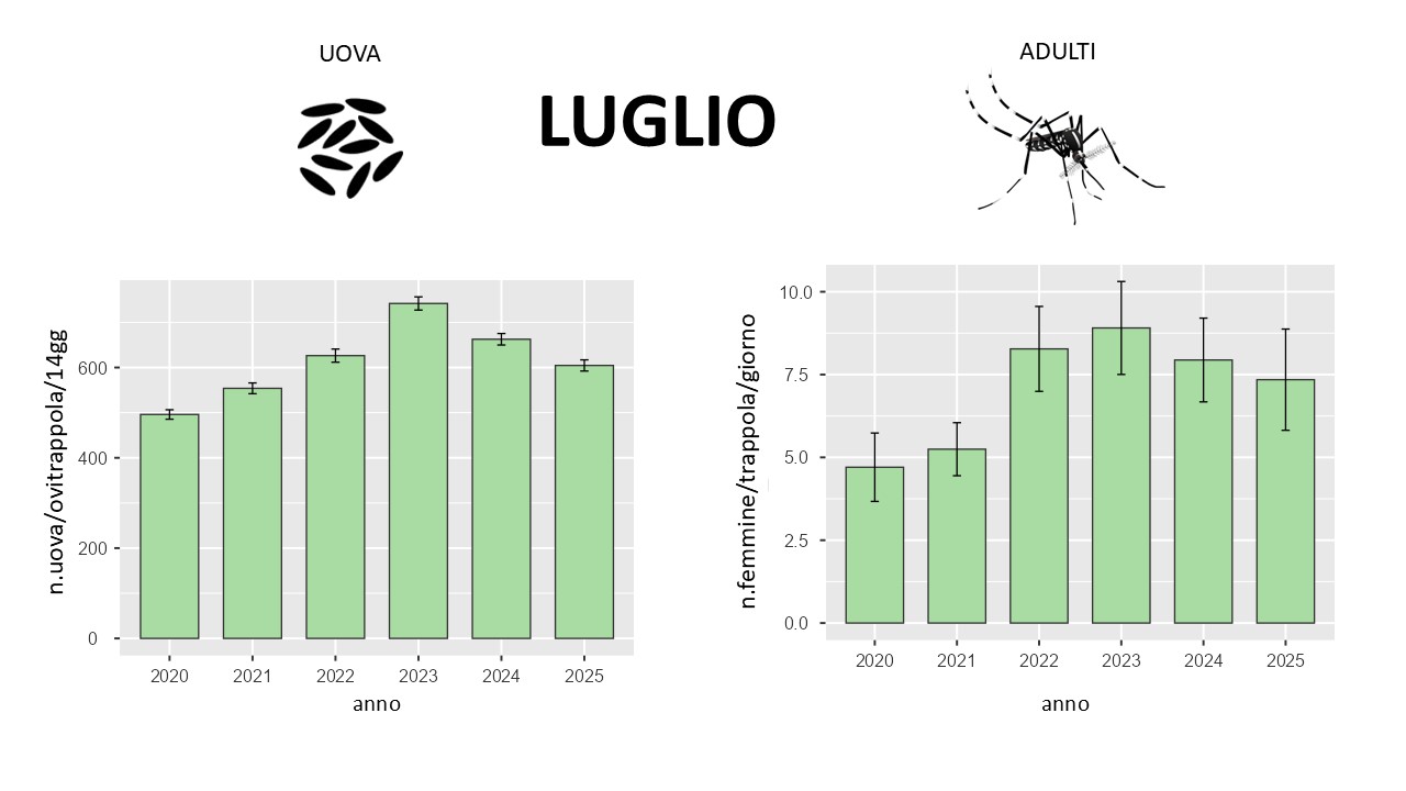 Di seguito il dettaglio del mese di luglio confrontato con gli ultimi 5 anni in cui viene riportata la media uova e la media adulti.
